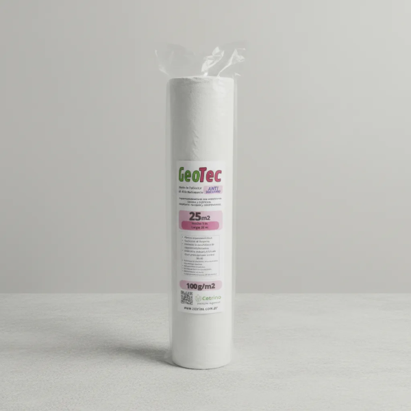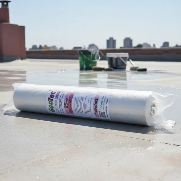 GeoTec Cetrino Malla Geotextil 100 g/m² – Refuerzo Para Membranas Líquidas y Cementicias – Rollo 25 m² GeoTec de Cetrino es una malla geotextil de poliéster de alta resistencia, ideal para impermeabilización, refuerzo de membranas líquidas, membranas cementicias, drenaje y filtrado. Producto de uso profesional para techos, losas y reparaciones. Usos principales (keywords estratégicos) Malla geotextil para impermeabilizar techos y losas. Refuerzo para membranas líquidas y membranas cementicias. Punteo de fisuras y grietas. Reparación de impermeabilizaciones deterioradas. Malla para drenaje y filtrado (ideal terrazas verdes). Geotextil para separar, drenar, proteger e impermeabilizar. Ventajas competitivas Excelente impermeabilidad. Alta resistencia al desgarro (anti desgarro). Mejora la durabilidad de todo sistema impermeable. Estabilidad y refuerzo flexible para superficies con movimiento. Mayor continuidad y vida útil de las impermeabilizaciones. Especificaciones técnicas Rollo: 25 m² Ancho: 1 m Largo: 25 m Gramaje: 100 g/m² Material: Poliéster de alta resistencia Marca: Cetrino – Industria Argentina GeoTec es la elección profesional para quienes buscan rendimiento real, soporte estructural y máxima eficiencia en impermeabilizaciones con membranas líquidas o cementicias.