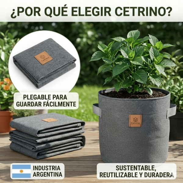 Las macetas de geotextil CETRINO son MUY RESISTENTES Y GRANDES. Ver las características en las imágenes.