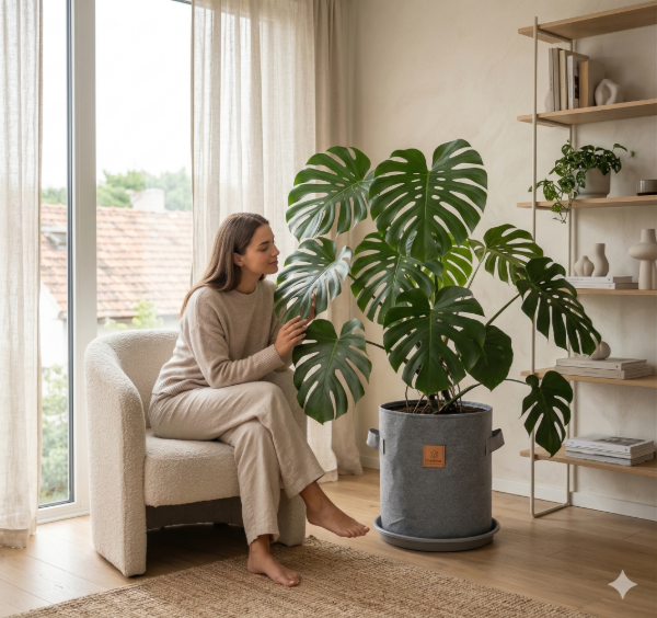 El material geotextil libera el exceso de calor, por lo que las temperaturas se mantienen más suaves en el interior que en las macetas de plástico.