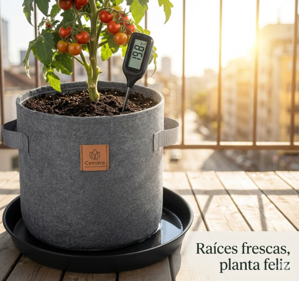 El material geotextil libera el exceso de calor, por lo que las temperaturas se mantienen más suaves en el interior que en las macetas de plástico.